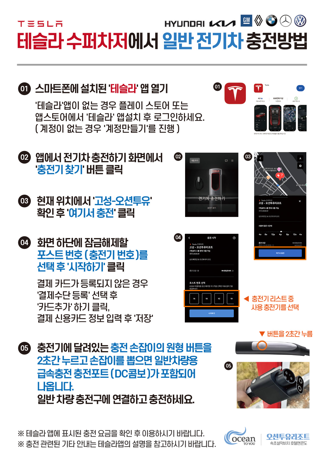 [안내] 오션투유 충전소 '테슬라 수퍼차저'에서 '일반 전기차' 충전방법